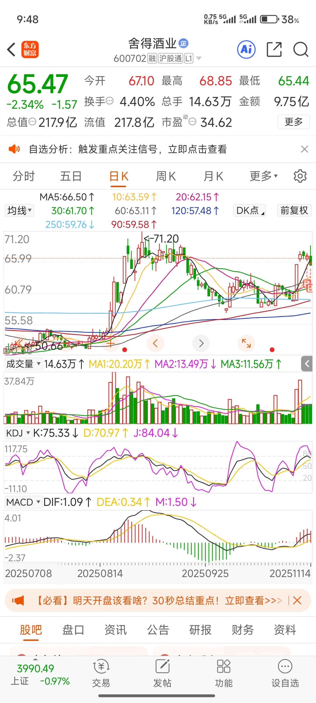 $舍得酒业(SH600702)$ 韭菜们他跌一次我买一次,我们下周见分晓