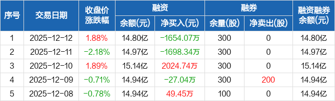 舍得酒业:融资净偿还1654.07万元,融资余额14.8亿元(12-12)