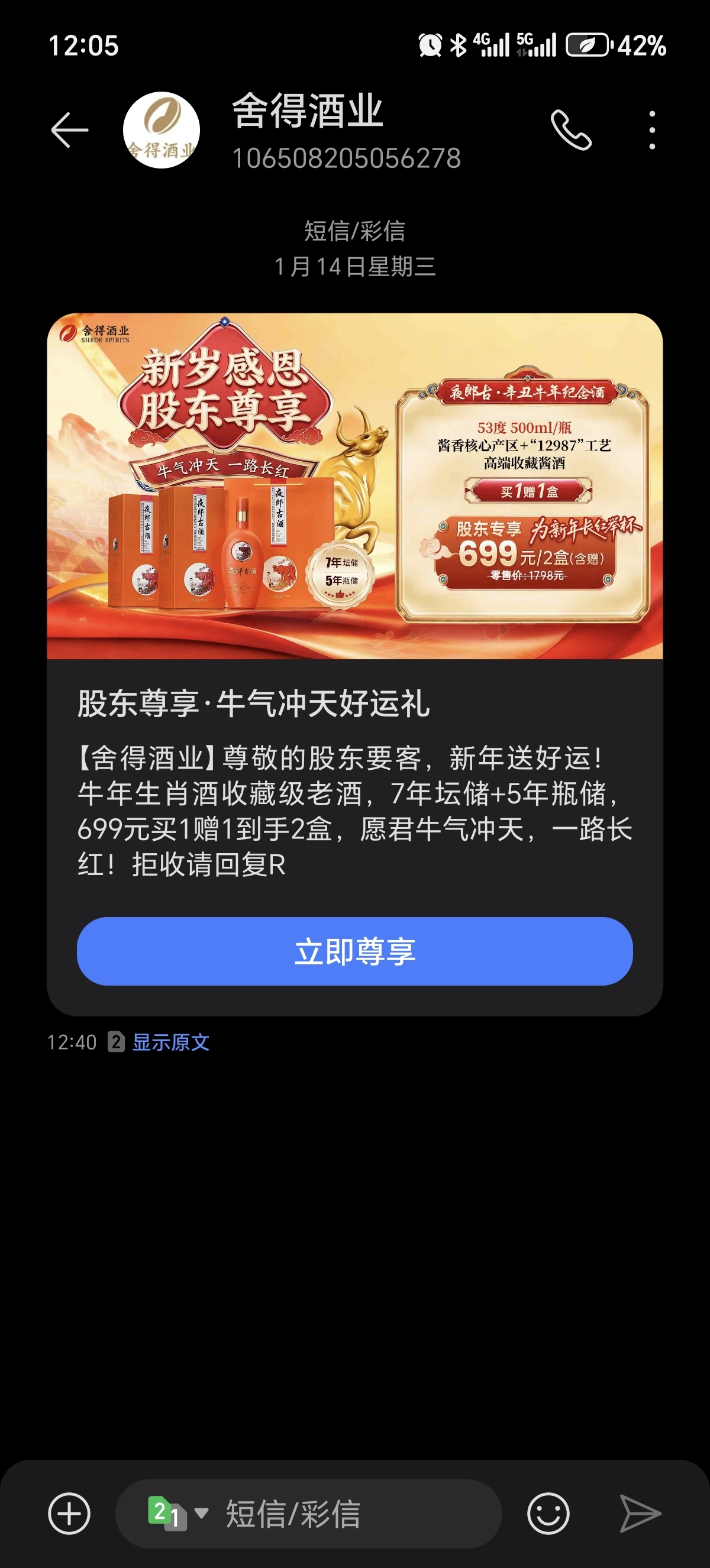 $舍得酒业(SH600702)$ 你们有收到这个短信吗?