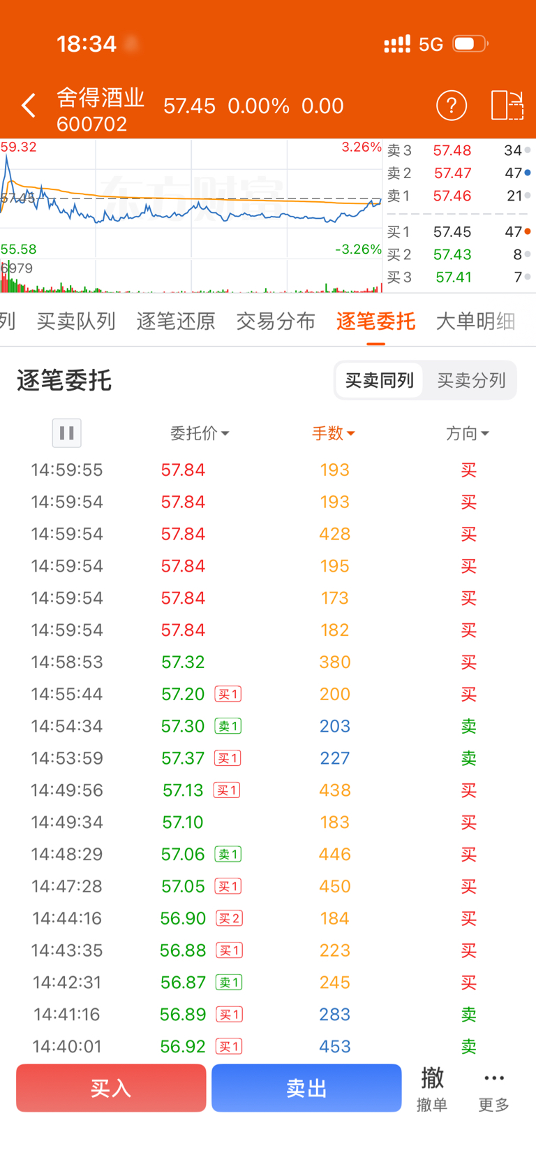 $舍得酒业(SH600702)$ 哪位大哥如此看好?尾盘买2000手