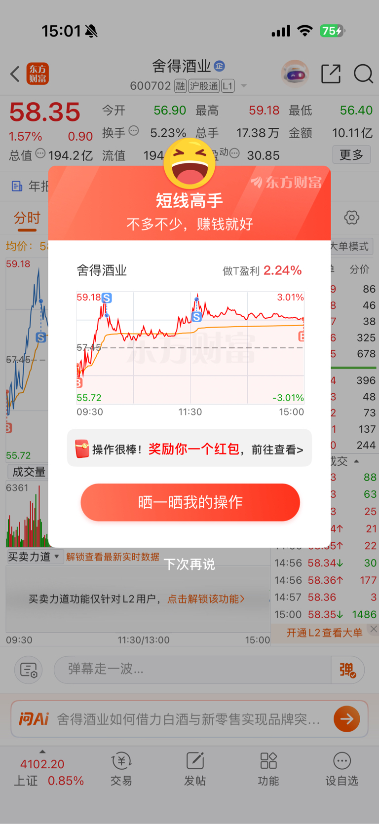 $舍得酒业(SH600702)$ 助力不争气怎么办呢,只能自己慢慢t啊