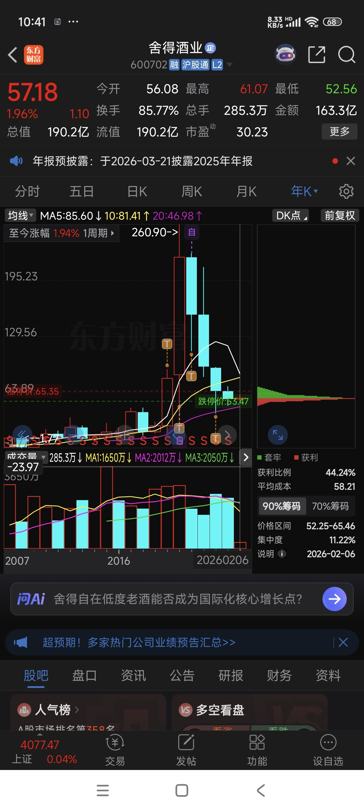 $舍得酒业(SH600702)$ 26年在跌30个点?