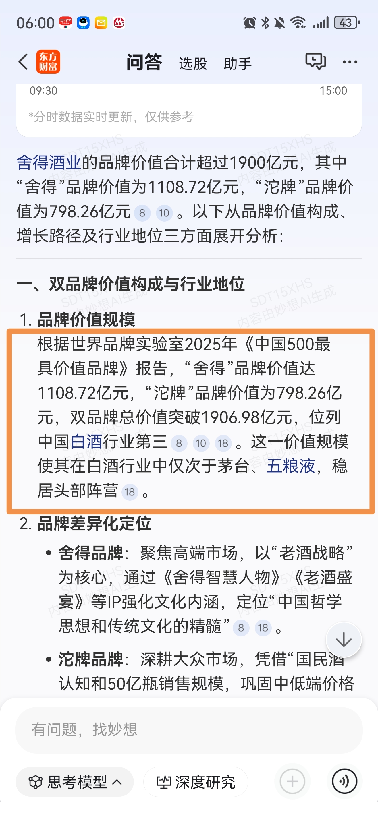 $舍得酒业(SH600702)$ 品牌价值无敌啊