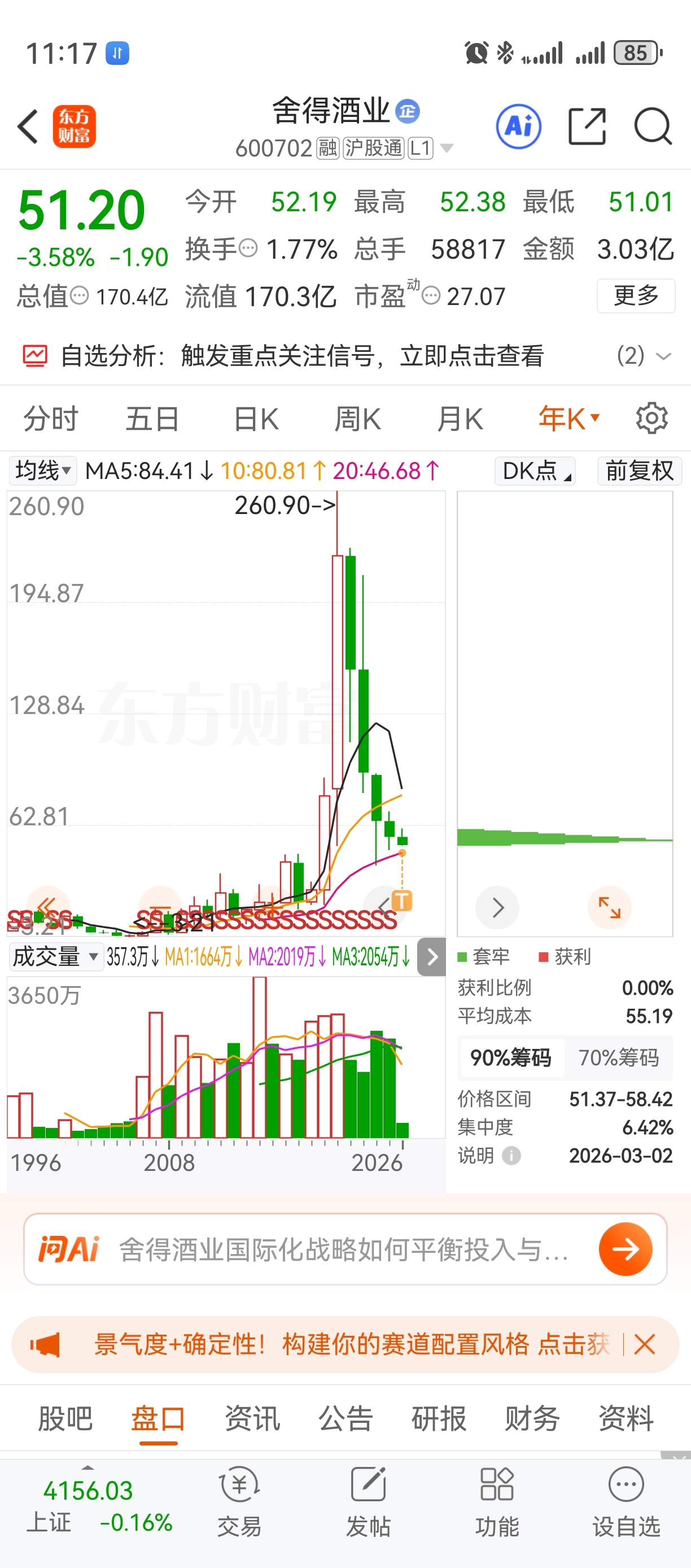 $舍得酒业(SH600702)$ 好家伙,这么下来的