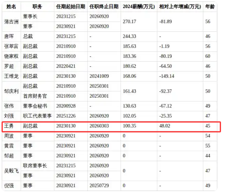 根据舍得酒业年报,王勇2023年、2024年分别从公司获得的税前报酬总额为52.33万元、100.35万元。