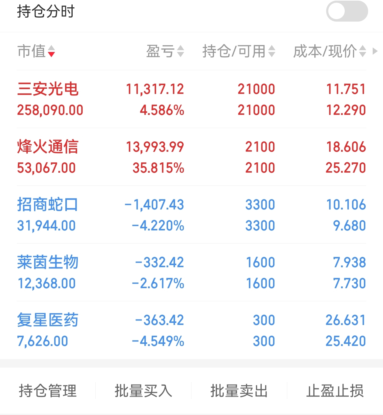 $三安光电(SH600703)$ 前面高点没出,回撤20个点后又慢慢加仓到2w股。静待花开。打边路的国光电器,科华数据,三花智控都拿来加仓你了,烽火通信出来,如果你还横着,继续加仓。
