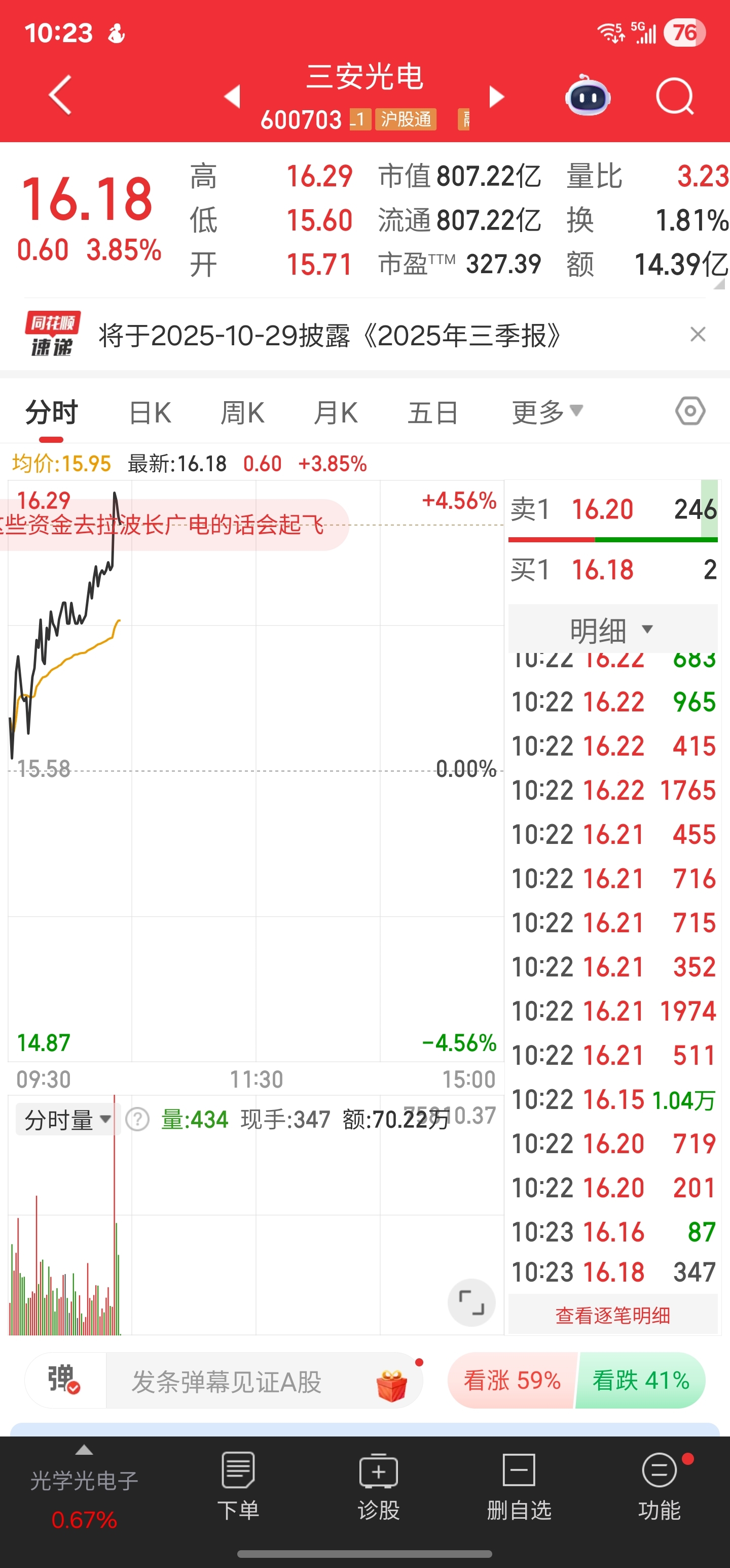$三安光电(SH600703)$ 出还是不出啊一万股,,,,,,有人万手砸你 不会是三期员工出货吧