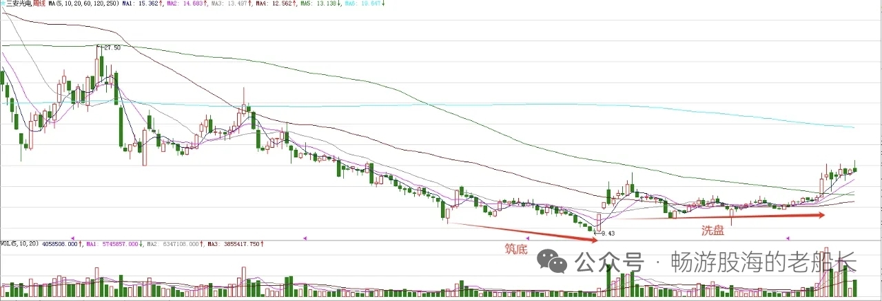 $三安光电(SH600703)$ 三安光电,周线级别的走势来看,中期底部形态实现有效突破后,进入到了漫长的洗盘阶段。这个过程,主要是通过长时间的震荡,给半年线下行提供比较充分的时间下行,有效缩短其与周六十单位均线之间的乖离率。。近期的震荡,不过是继续修复这两条均线。周期面来看,下周是变盘节点,不过还需要继续调整。调整之后,就会走新的波段上涨。