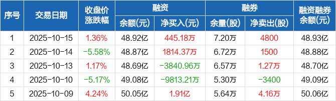 三安光电:融资净买入445.18万元,融资余额48.92亿元(10-15)