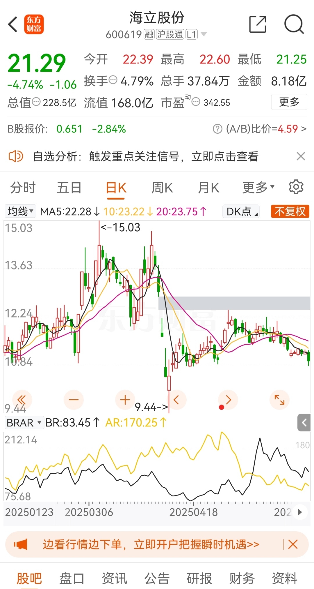 $三安光电(SH600703)$ 看看海立四月k线,我不是指一模一样那肯定不会,但是这个趋势