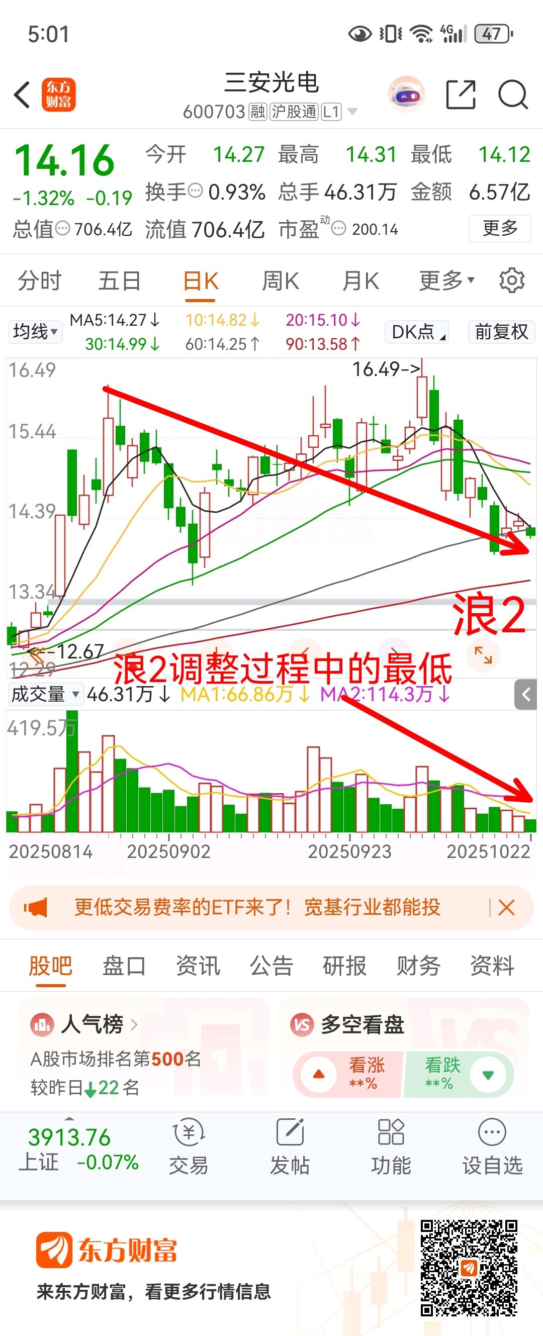 明日(周四)最高点目测14.23