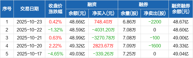 三安光电:融资净买入748.4万元,融资余额48.66亿元(10-23)