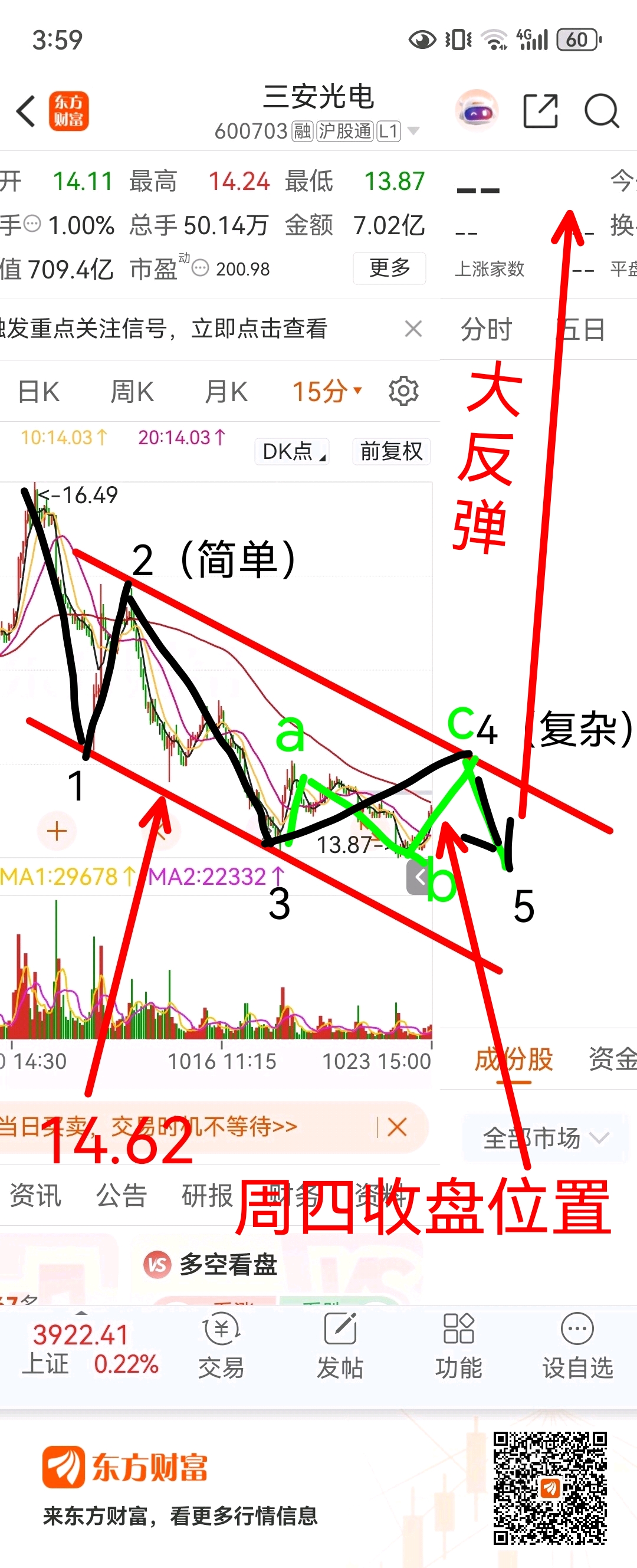 从16.49开始的下跌在下周初应该会结束了,依然认为最后的“5”衰竭(最低点高于“3”最低点13.91)