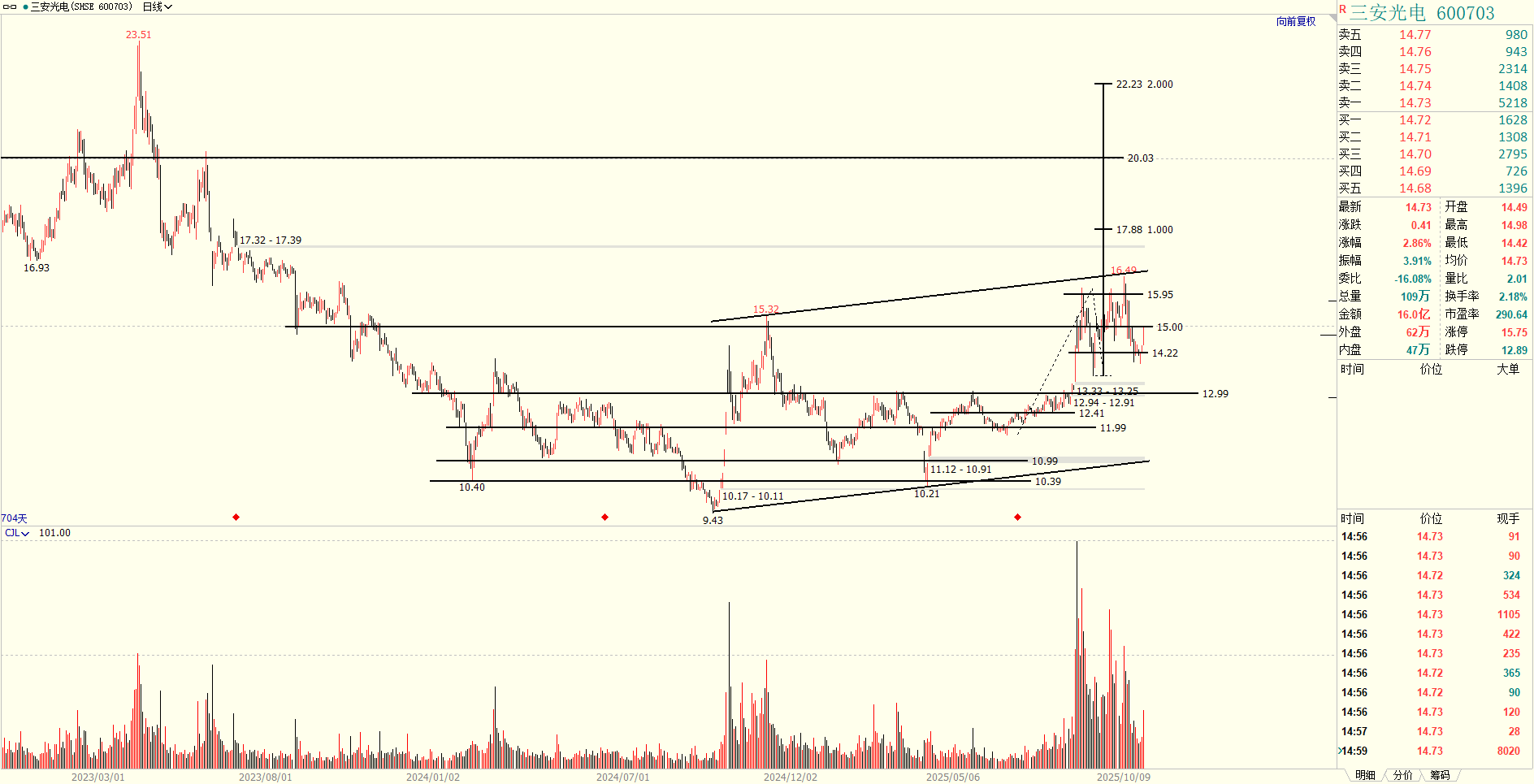 一把直尺打天下/三安光电11-15大规模头肩底,趋势目标30;现阶段,行情围绕1