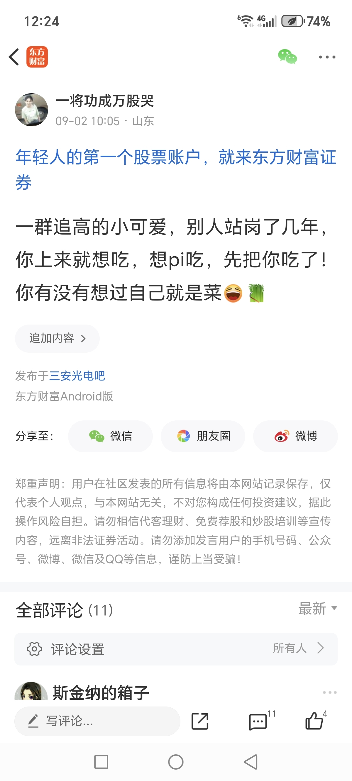 温馨提示: 1.根据《证券法》规定,禁止编造、传播虚假信息或者误导性信息,扰乱证券市场;2.用户在本社区发表的所有资料、言论等仅代表个人观点,与本网站立场无关,不对您构成任何投资建议。用户应基于自己的独立判断,自行决定证券投资并承担相应风险。《东方财富社区管理规定》