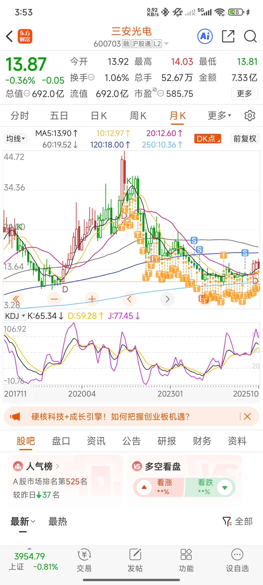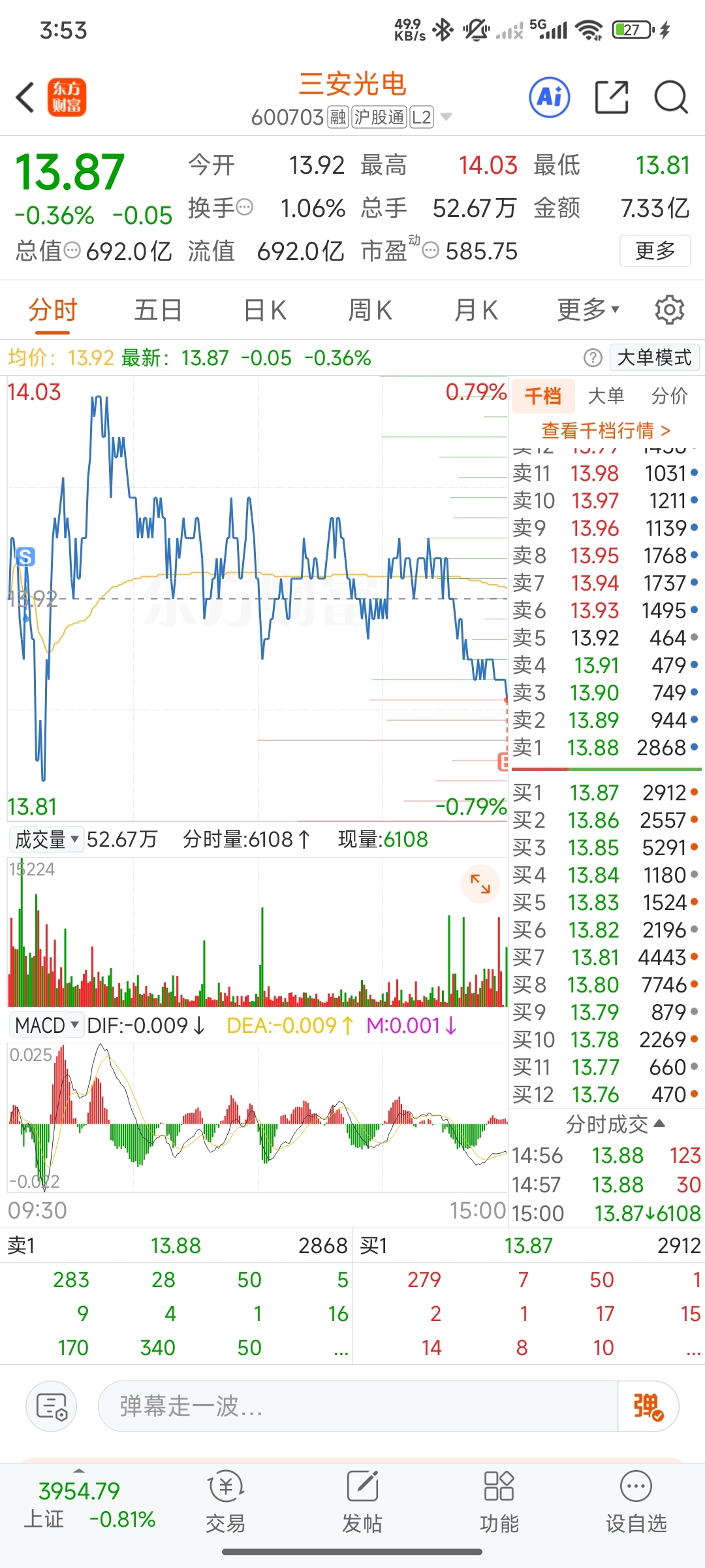 $三安光电(SH600703)$ 今天怎么跟半导体ETF跌四个点啊,我早上卖了尾盘接回才0.3%的差价。还有这些该死的天天跟怨妇似的钱赚不到嘴一刻都不停的,今天这跑赢ETF4%也bb,怎么不跌死这些g