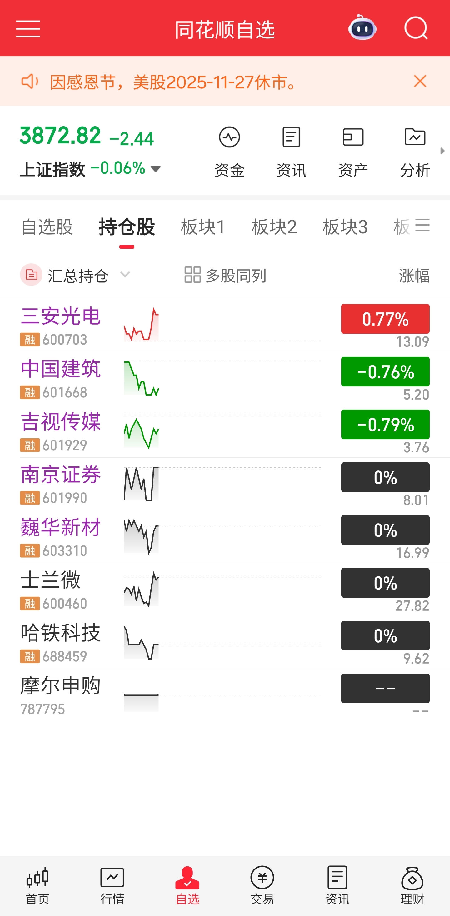 $三安光电(SH600703)$ 高点已现兄弟们 今天我的持仓就他一个红