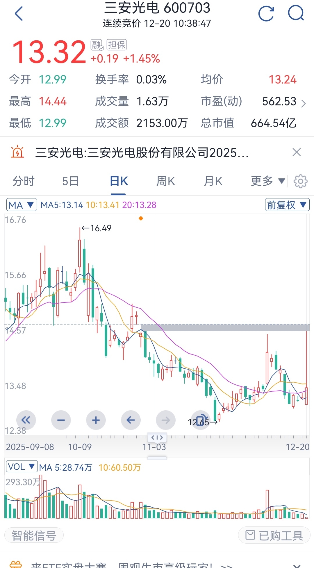 $三安光电(SH600703)$ 接下午测试拉的走势,趋势