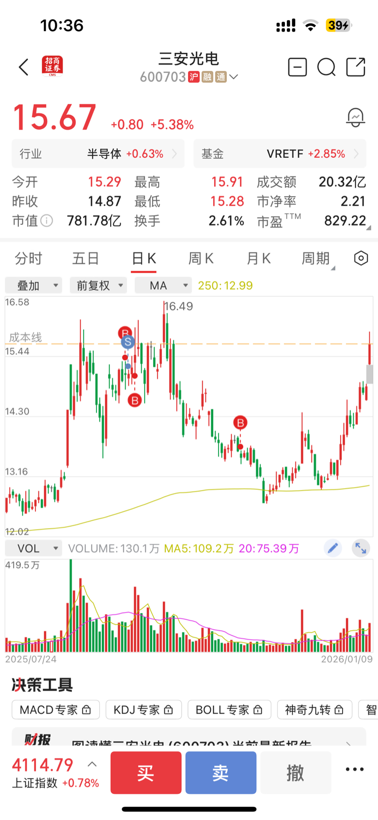 $三安光电(SH600703)$ 天天在解套的路上来一个涨停吧