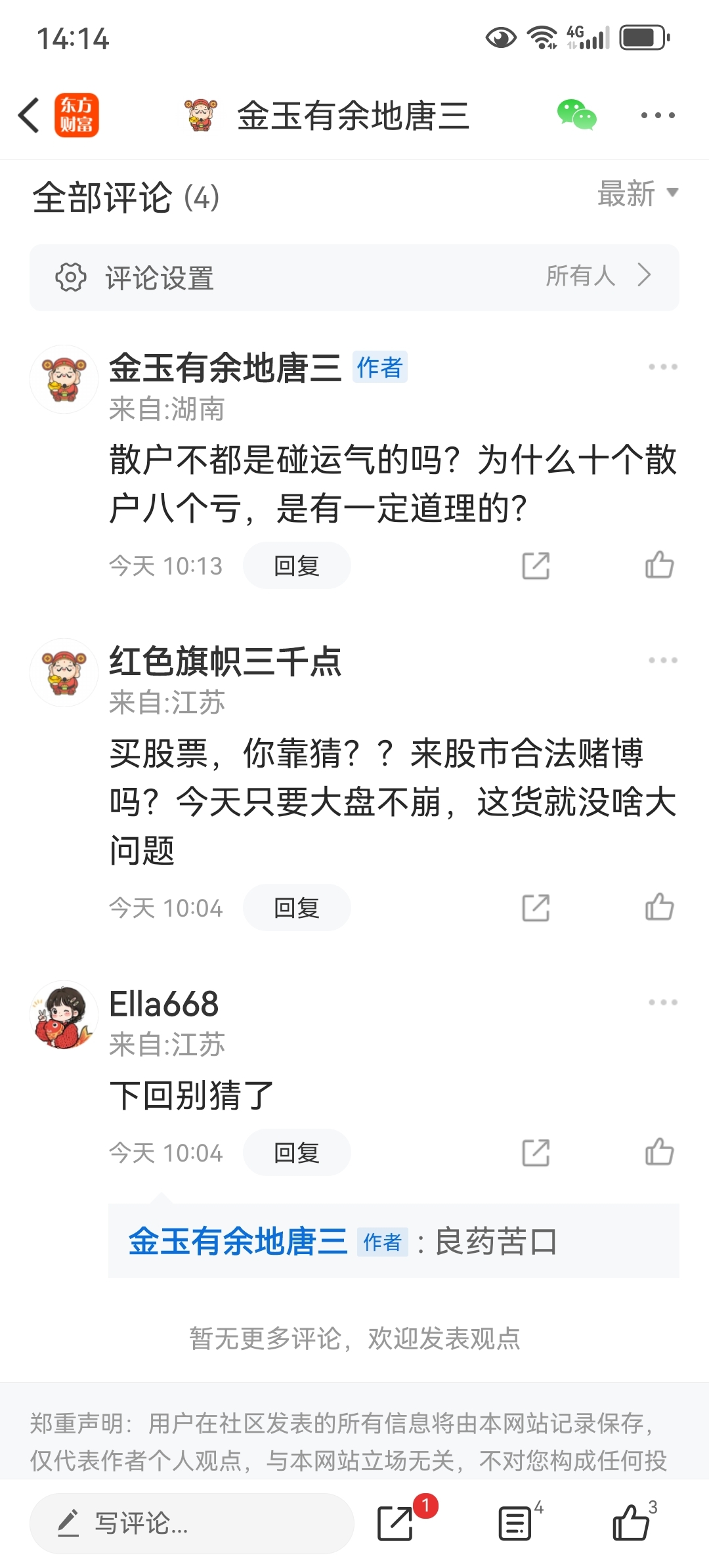 温馨提示: 1.根据《证券法》规定,禁止编造、传播虚假信息或者误导性信息,扰乱证券市场;2.用户在本社区发表的所有资料、言论等仅代表个人观点,与本网站立场无关,不对您构成任何投资建议。用户应基于自己的独立判断,自行决定证券投资并承担相应风险。《东方财富社区管理规定》