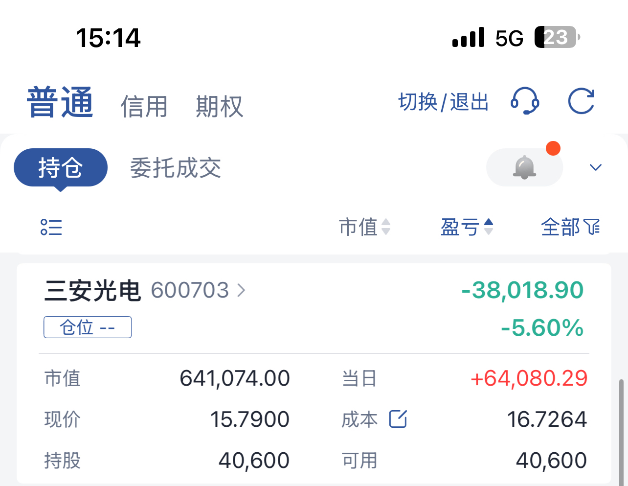 $三安光电(SH600703)$ 今日卖了4200股,运气好的话,星期一就解套,套了快5年