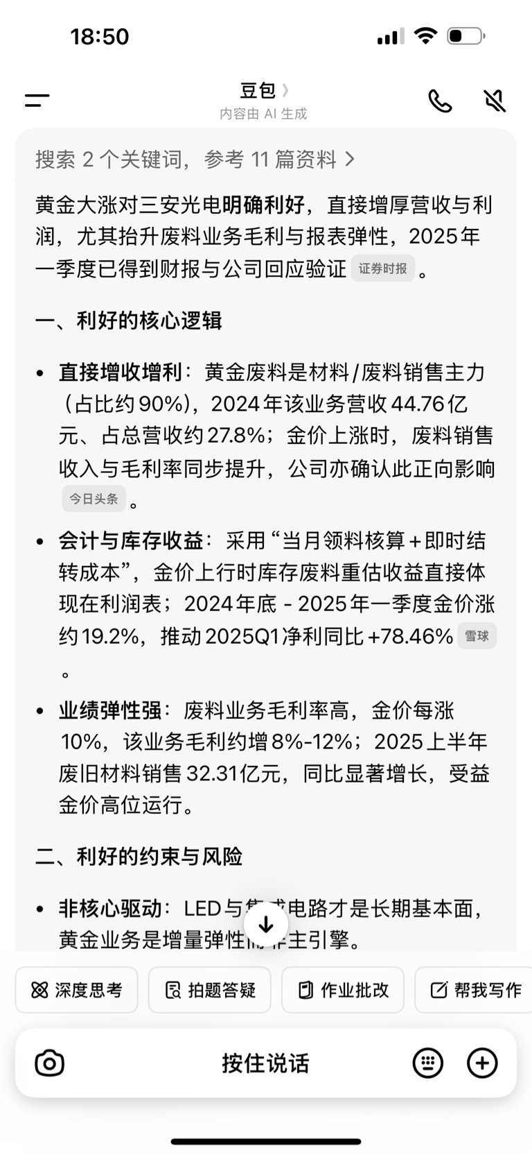 黄金大涨利好三安光电吗?有懂的吗?说一下