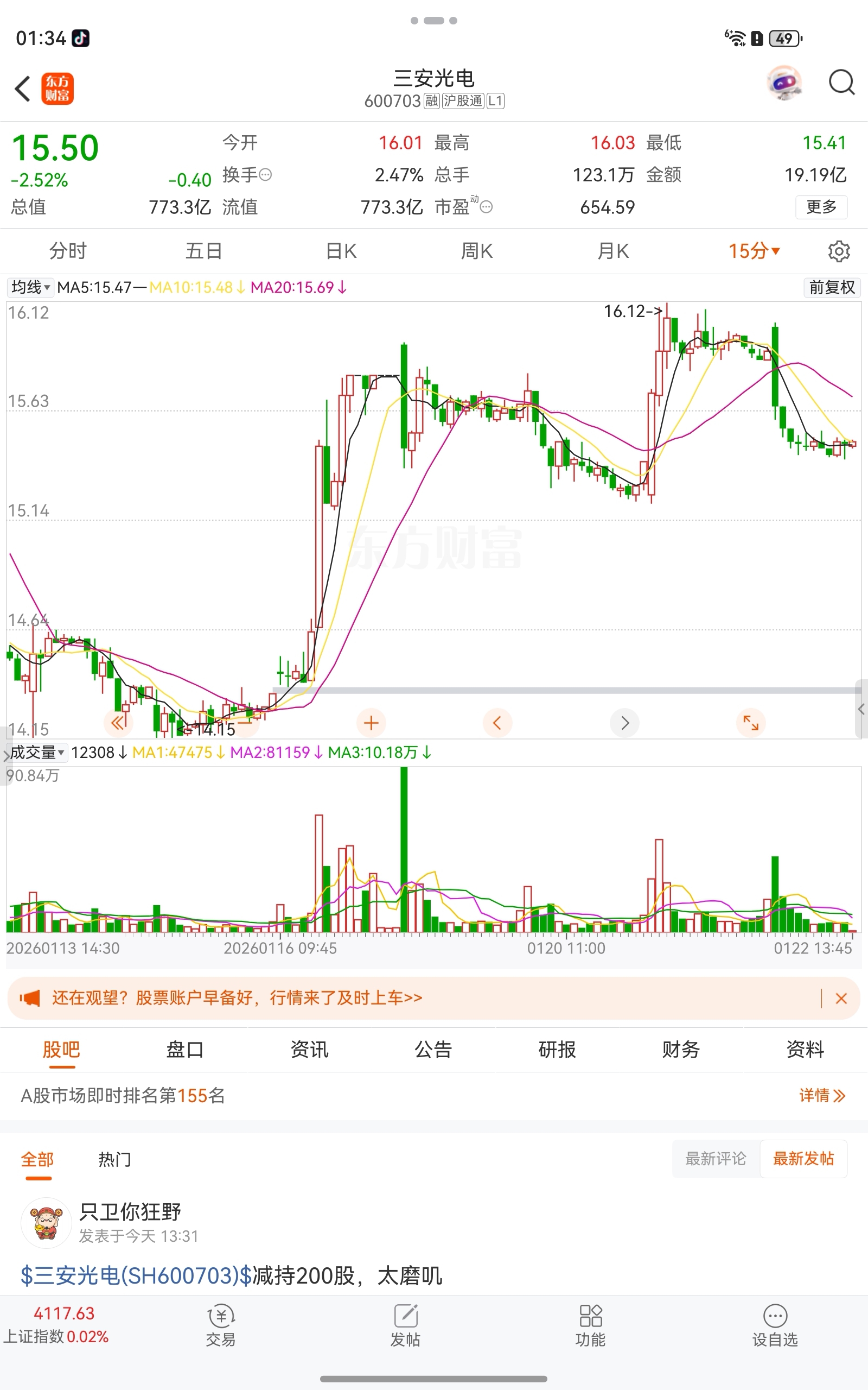 温馨提示: 1.根据《证券法》规定,禁止编造、传播虚假信息或者误导性信息,扰乱证券市场;2.用户在本社区发表的所有资料、言论等仅代表个人观点,与本网站立场无关,不对您构成任何投资建议。用户应基于自己的独立判断,自行决定证券投资并承担相应风险。《东方财富社区管理规定》