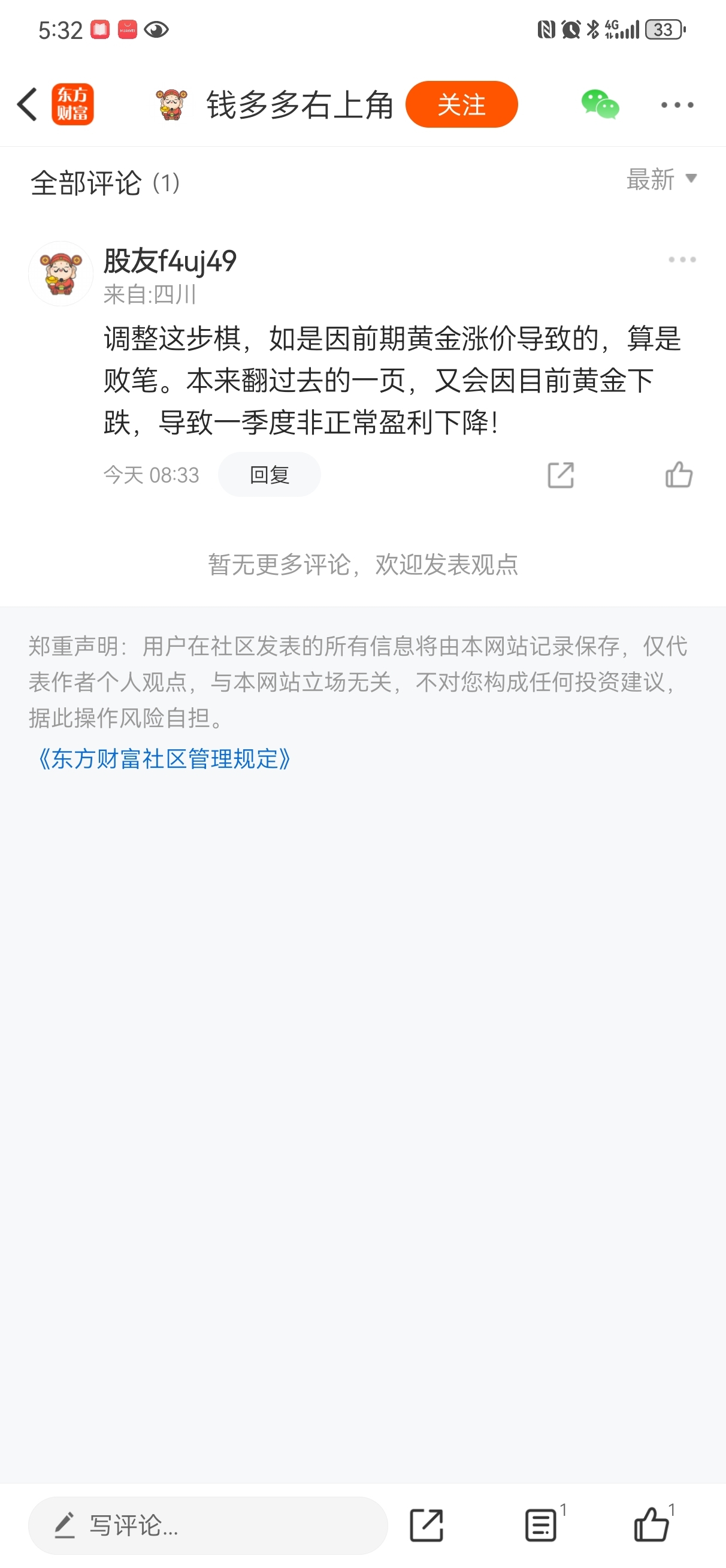 温馨提示: 1.根据《证券法》规定,禁止编造、传播虚假信息或者误导性信息,扰乱证券市场;2.用户在本社区发表的所有资料、言论等仅代表个人观点,与本网站立场无关,不对您构成任何投资建议。用户应基于自己的独立判断,自行决定证券投资并承担相应风险。《东方财富社区管理规定》