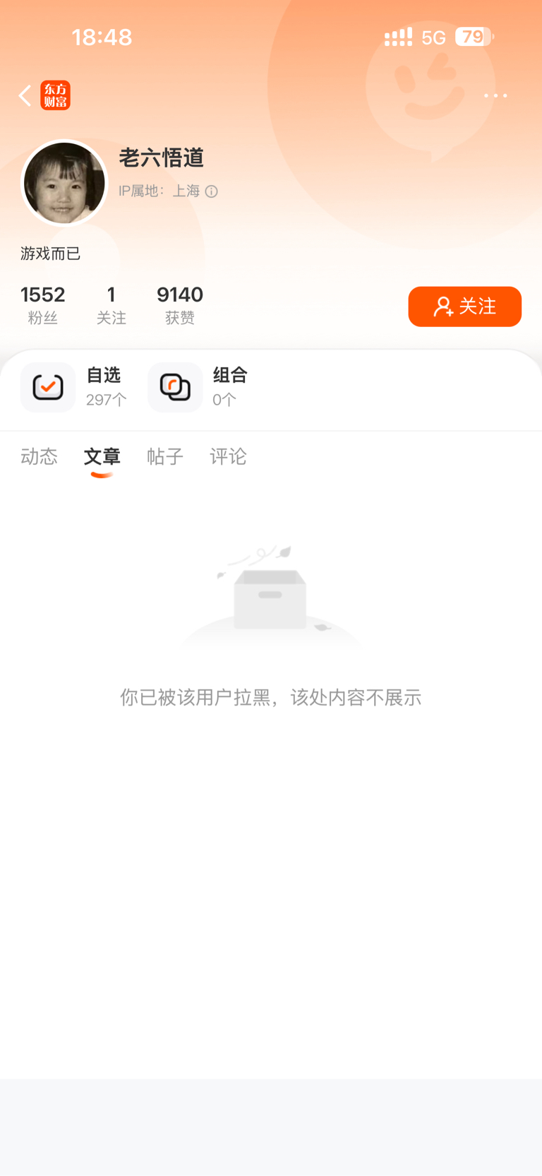 昨天就给老六评论了下,陈述了下事实,就被拉黑了,这老六是真的六
