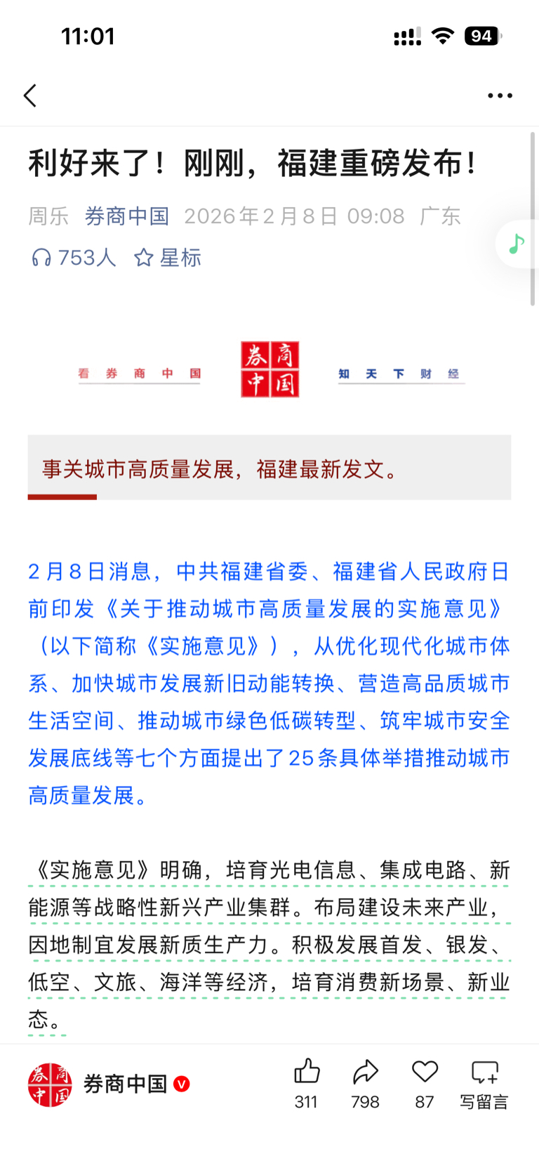 $三安光电(SH600703)$ 2月8日消息,中共福建省委、福建省人民政府日前印发《关于推动城市高质量发展的实施意见》明确培育光电信息、集成电路、新能源等战略性新兴产业集群。