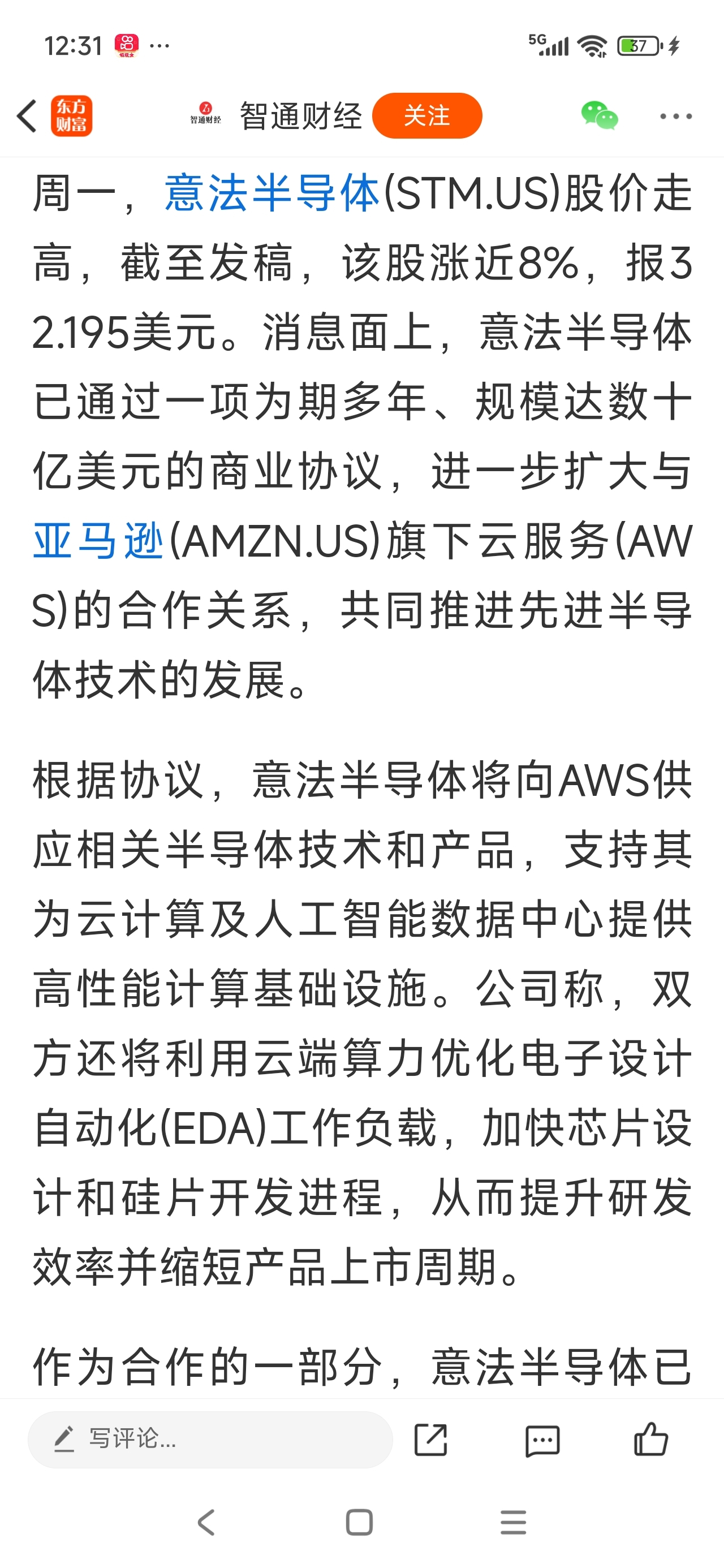 亚马逊子公司aws买入意法半导体股份强强联合,三安也间接与亚马逊合作了,应该是是