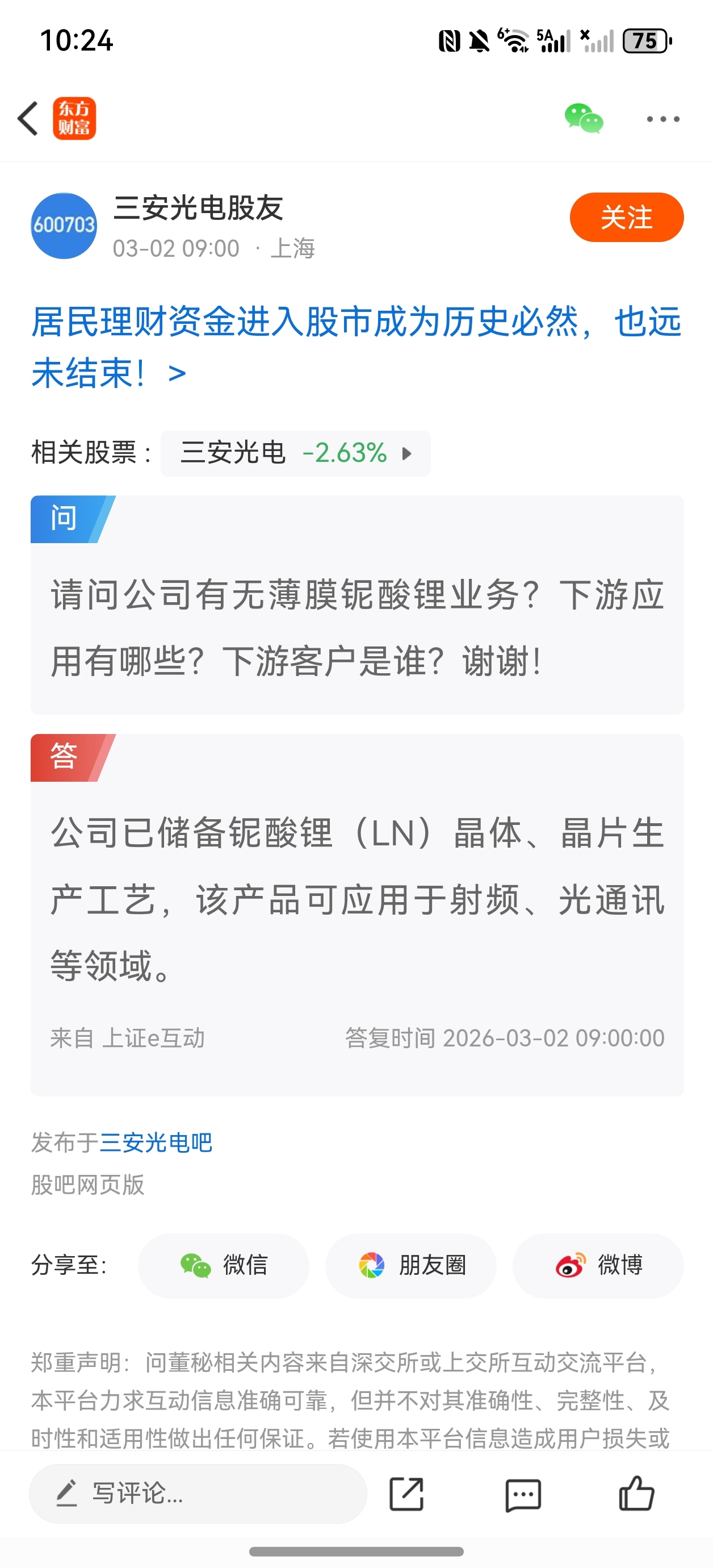 温馨提示: 1.根据《证券法》规定,禁止编造、传播虚假信息或者误导性信息,扰乱证券市场;2.用户在本社区发表的所有资料、言论等仅代表个人观点,与本网站立场无关,不对您构成任何投资建议。用户应基于自己的独立判断,自行决定证券投资并承担相应风险。《东方财富社区管理规定》