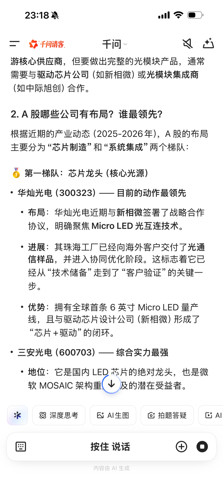 管理层真的很缺乏前瞻性,而高科技领域前瞻性又特别重要,所以导致了三安进入投产_释放产能就面临产能过剩,总是慢,慢半拍,甚至慢一拍。同样做Micro LED,华灿明确布局Micro LED光通信,三安又等着吃剩下的呢