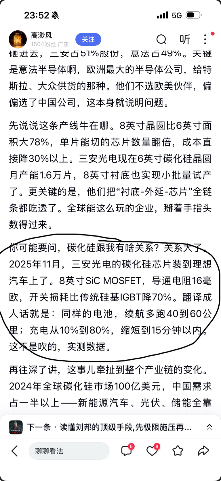 $三安光电(SH600703)$ 三安光电,车规级SIC龙头,理想,比亚迪为啥充电这么快?SIC功率器件是关键。