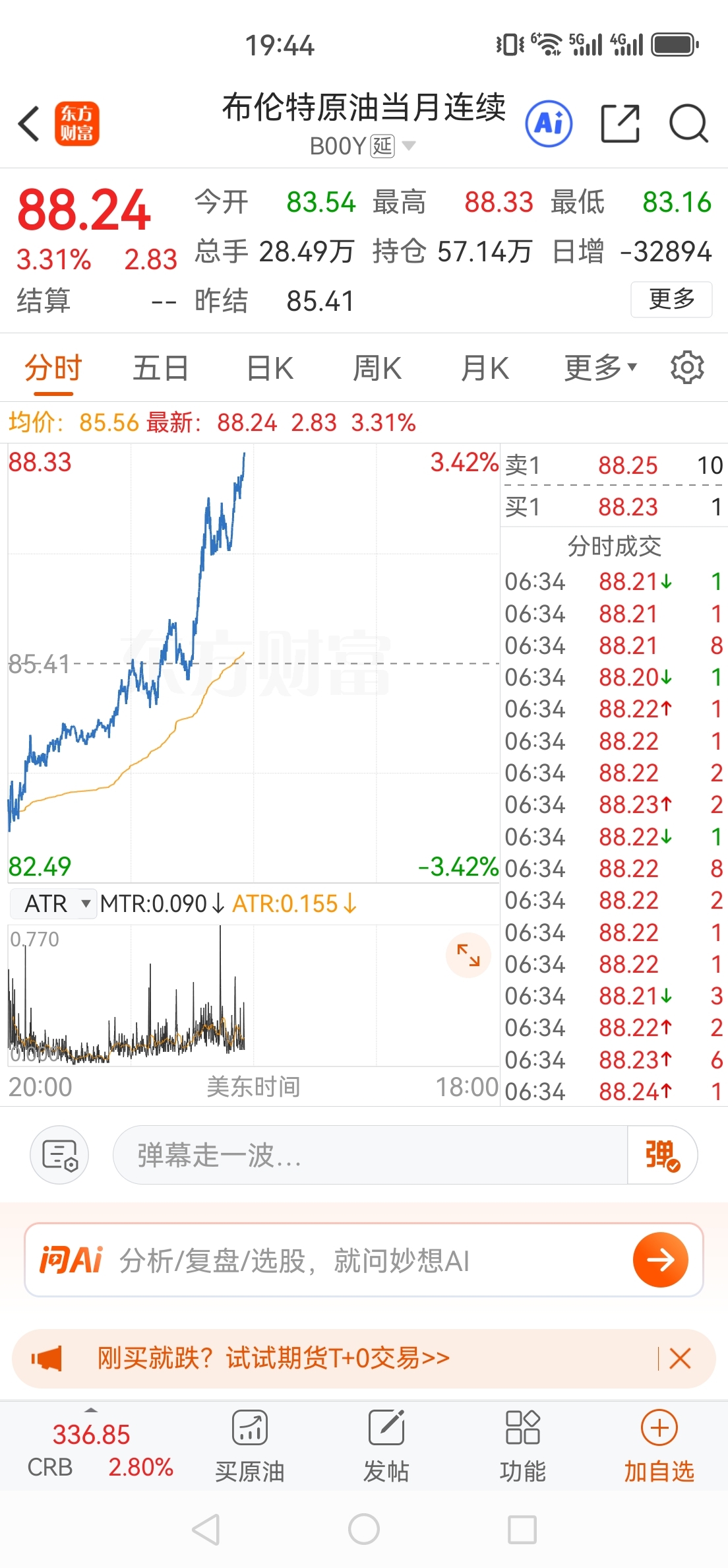 $三安光电(SH600703)$ 全都来看,果真,又被我说中了,布伦特原油,现在到了88刀,接下来就是站稳这个位置,周一,石油,油气,天然气,绝对必然直接红开