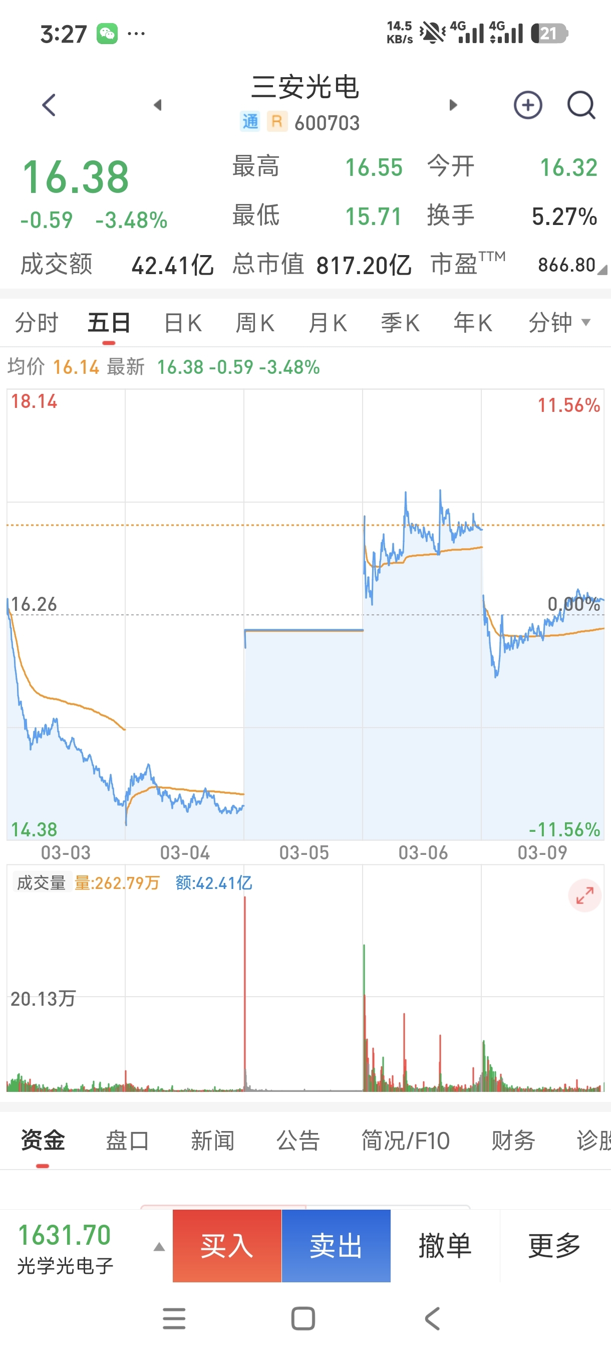 $三安光电(SH600703)$ 兄弟们 我对不起你们啊 本来拉升呢我买了不拉了