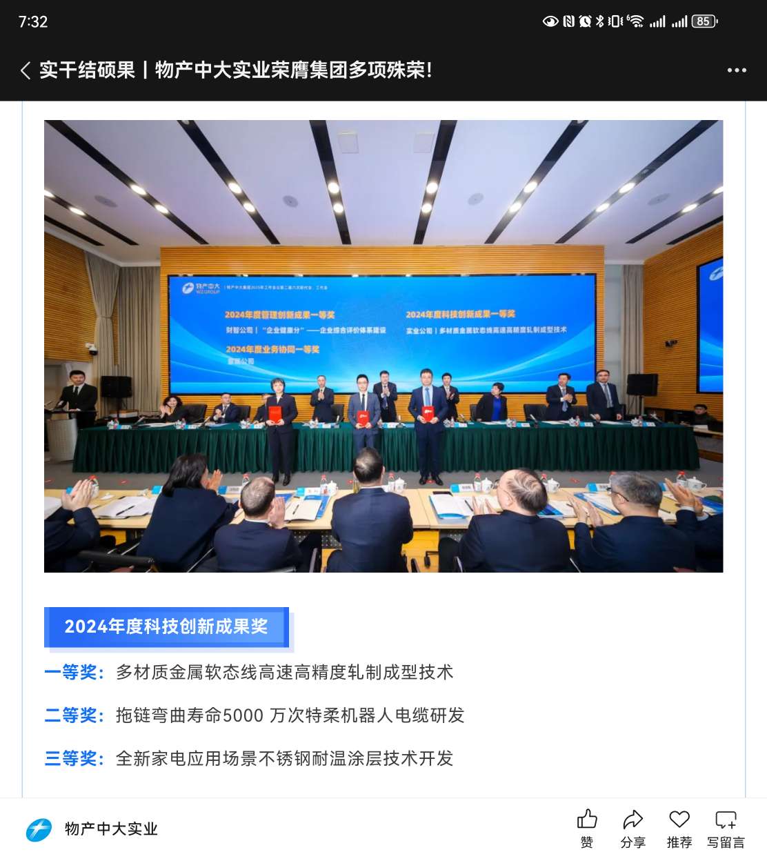 - 创新成果体现:在物产中大集团2025年工作会议暨二届六次职代会、工代会上,物产中大元通电缆有限公司荣获2024年度科技创新成果奖二等奖,获奖项目为“拖链弯曲寿命5000万次特柔机器人电缆研发”,体现了其在机器人电缆研发方面的实力。