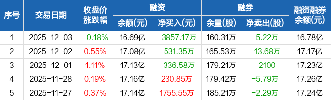 物产中大:连续3日融资净偿还累计4725.1万元(12-03)