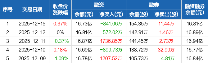 物产中大:融资净偿还841.06万元,融资余额16.73亿元(12-15)