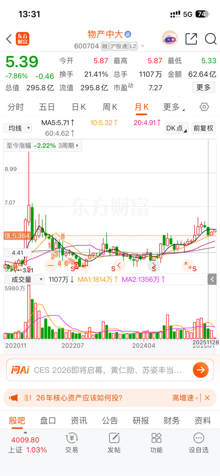 $物产中大(SH600704)$ 10万底舱等突破,连续数年绩优股,高分红,风险小,收益可大可小,等爆发。