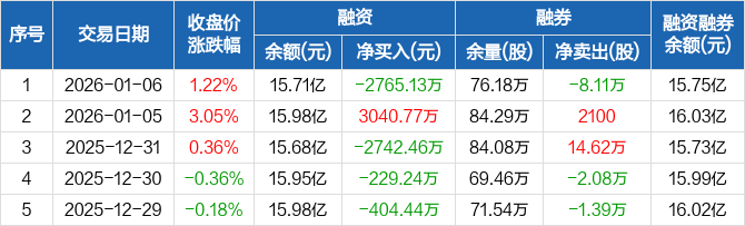 物产中大:融资净偿还2765.13万元,融资余额15.71亿元(01-06)