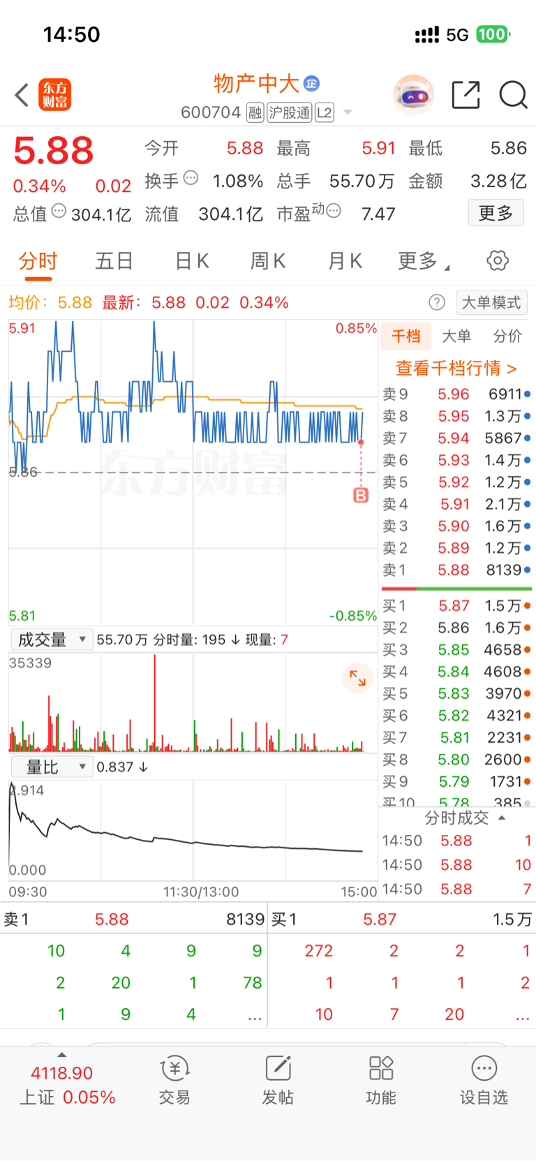 $物产中大(SH600704)$ 加仓加仓,同时期买的物产中大和中金岭南,今天减仓中金加仓物产,继续控制总仓位, 摇摇欲坠的大盘,小心谨慎为好,祝大家发财