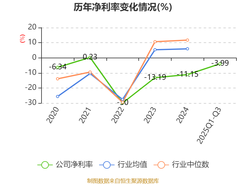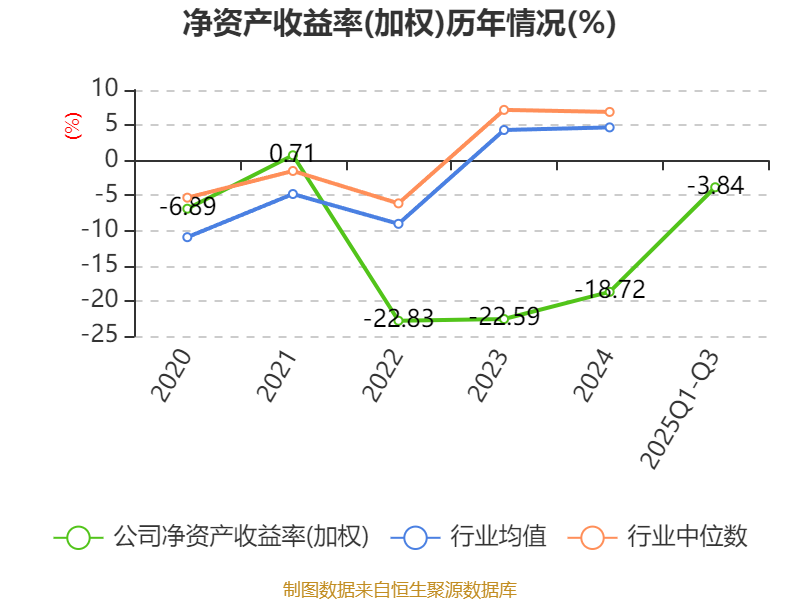 盈利能力方面, 2025年前三季度公司加权平均净资产收益率为-3.84%,同比上升22.88个百分点。公司2025年前三季度投入资本回报率为-0.17%,较上年同期上升9.46个百分点。