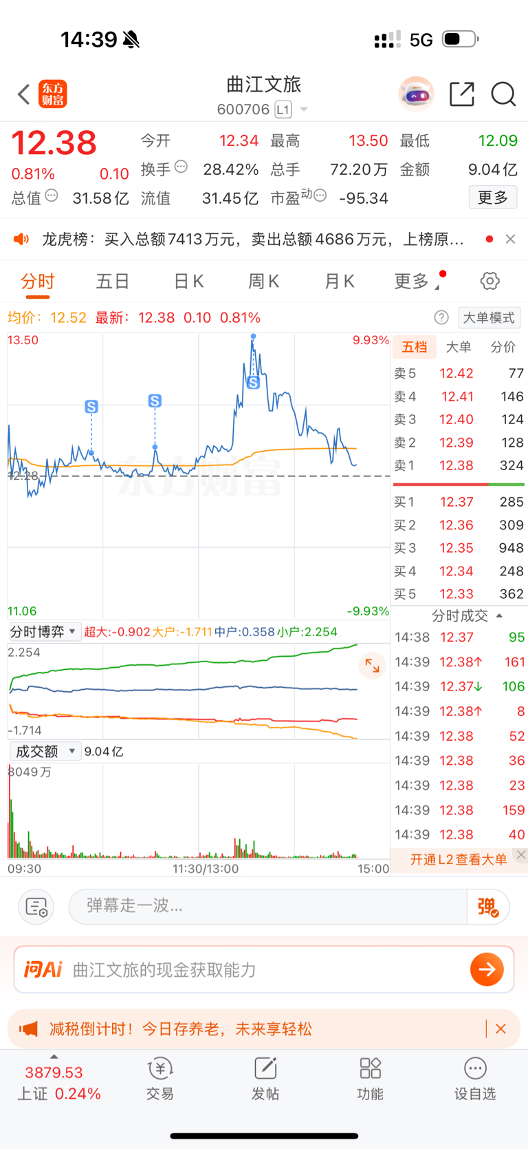 $曲江文旅(SH600706)$ 果然,清仓了,二月再来