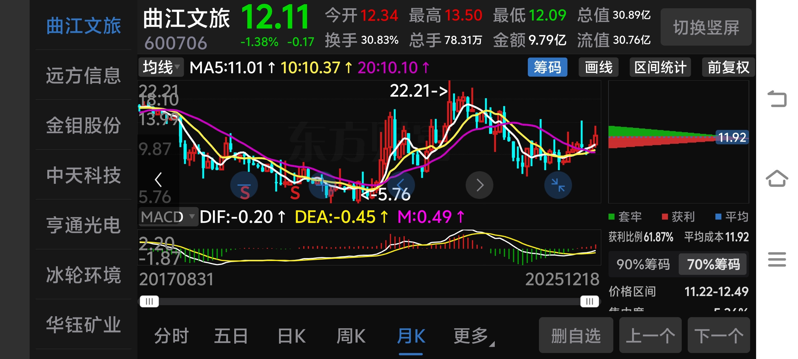 $曲江文旅(SH600706)$ 国家促消费,月线向上金叉,自己坚决不割肉,量化就拿你没办法!