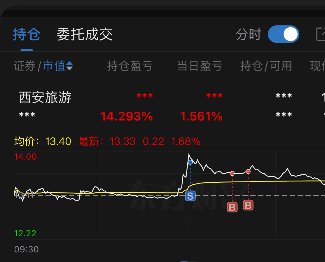 $曲江文旅(SH600706)$ $西安旅游(SZ000610)$ $西安饮食(SZ000721)$ 唉,收盘了,怎么说呢,平时懒得做T,今天手痒,心里想着高出卖,尾盘竞价买,结果还是没管住手,盘中又进去了,知行合一还是没做到
