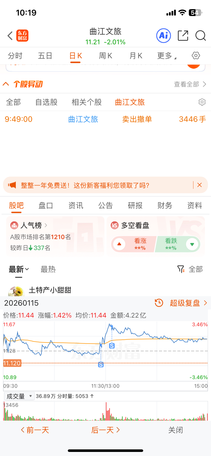 $曲江文旅(SH600706)$ 昨天跑了,今天回来抄底了,别埋我
