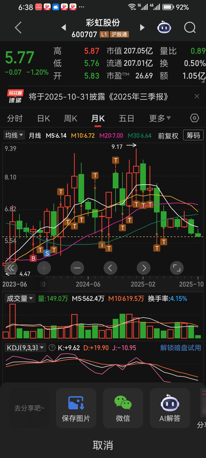 机会是跌出来的,风险是涨出来的。一波拉升及获利回吐行程基本完成。今日交易最低点 5.76,底中高缺回补了1/3,下周交易低点有可能见5.65。胆大的与主力抢低价位筹,胆小的待反弹跟进。6之下进套码此时没有必要割肉弃之…股友们周末愉快