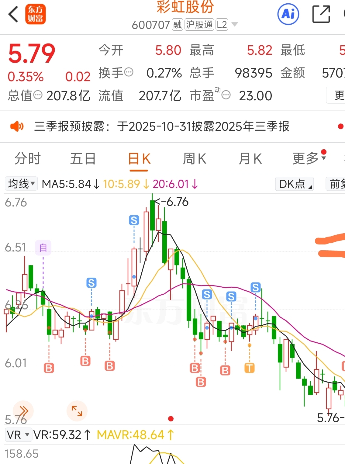 $彩虹股份(SH600707)$ 还好6.22跑完了。
