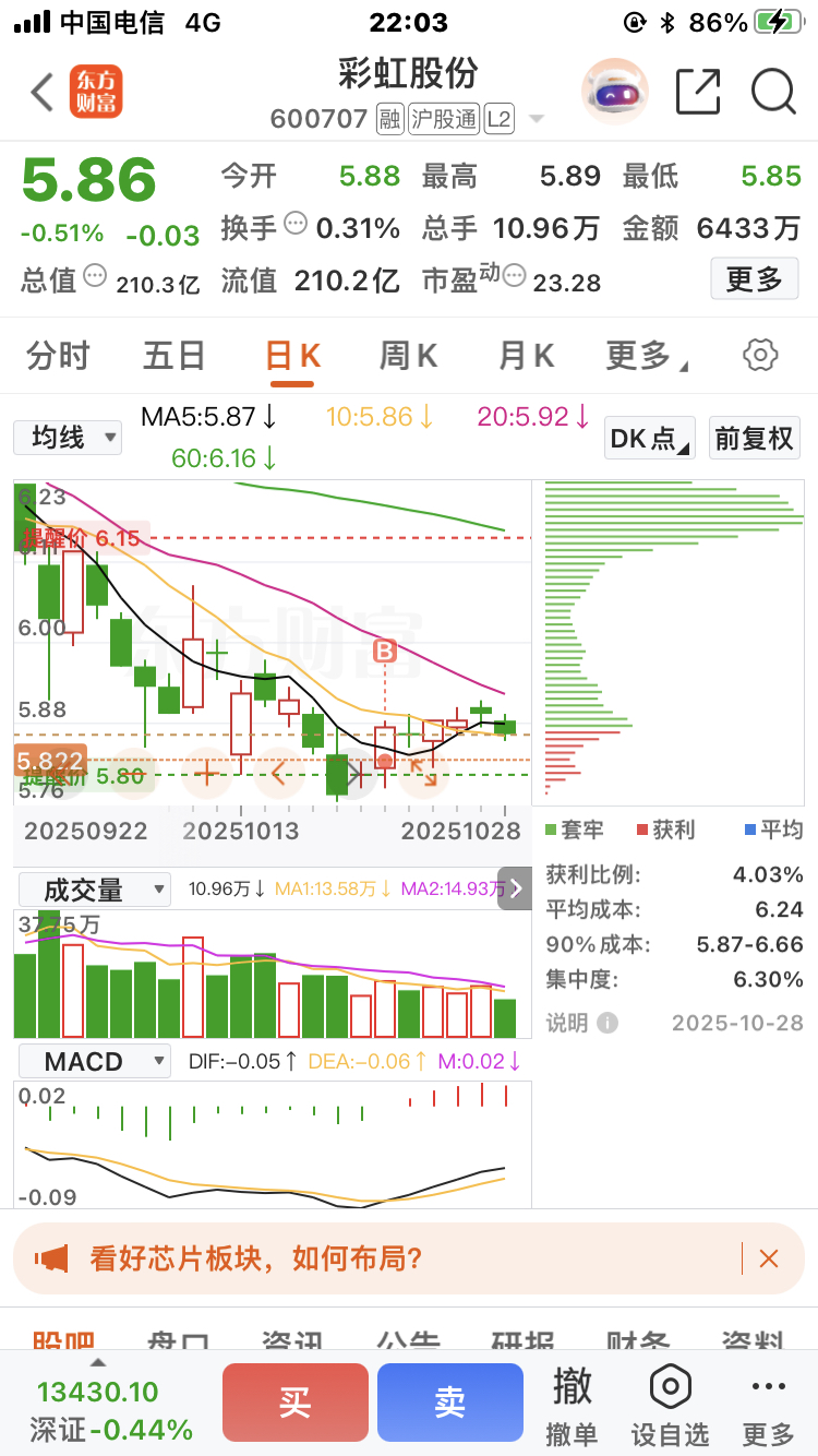 $彩虹股份(SH600707)$ 战友们大家好,我来了如果继续跌就对不起大家了